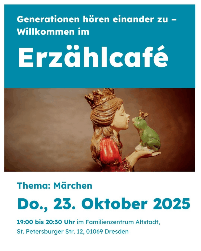 hiermit laden wir ganz herzlich zum nächsten Erzählcafé ein. Wir freuen uns auf eure Teilnahme. Gern könnt ihr auch Freunde und Bekannte mitbringen.